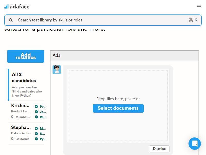 Adaface's online assessment platform streamlines technical and non-technical hiring for organizations across Singapore and India, featuring 500+ skill tests with advanced proctoring and AI resume parsing.