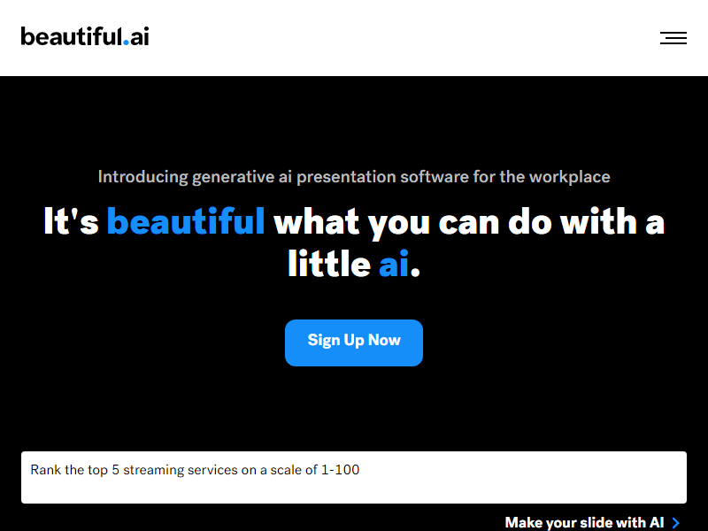 Beautiful.ai revolutionizes presentation creation through AI-driven design and collaborative tools, helping businesses from startups to Fortune 500 companies create professional slidesets quickly and efficiently.