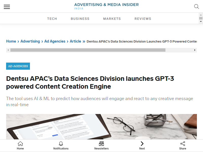 Dentsu's AI-powered content creation engine generates multilingual content while predicting audience reactions through real-time analytics, transforming digital marketing through sophisticated language processing and deep learning techniques.