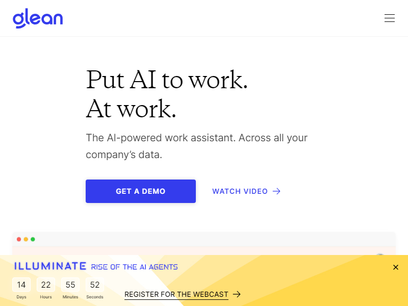 Glean transforms enterprise search through AI-powered discovery, connecting over 100 applications while maintaining strict security and compliance.