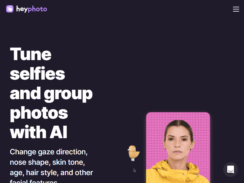 HeyPhoto's AI-powered tools transform faces and emotions in photos with features like face reshaping, swapping, and expression modification, all while preserving image quality.
