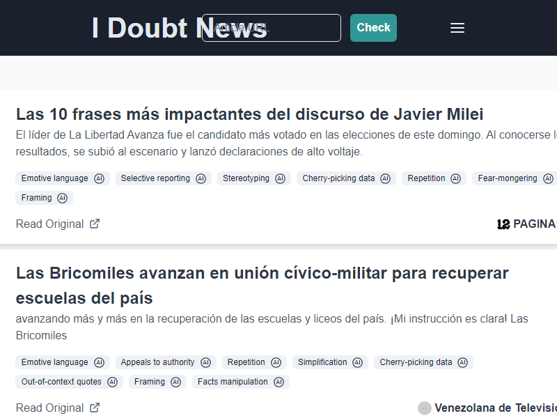 I Doubt News uses AI to analyze news credibility without making definitive judgments, while providing users with the tools to develop critical thinking skills for independent evaluation.