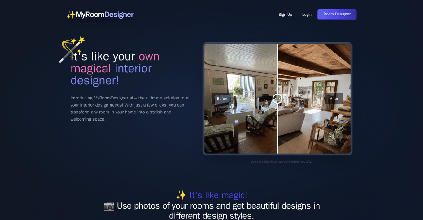 Transform your living space with AI-driven design tools from MyRoomDesigner. Our platform analyzes your room photos to generate multiple design options while keeping full creative control in your hands.