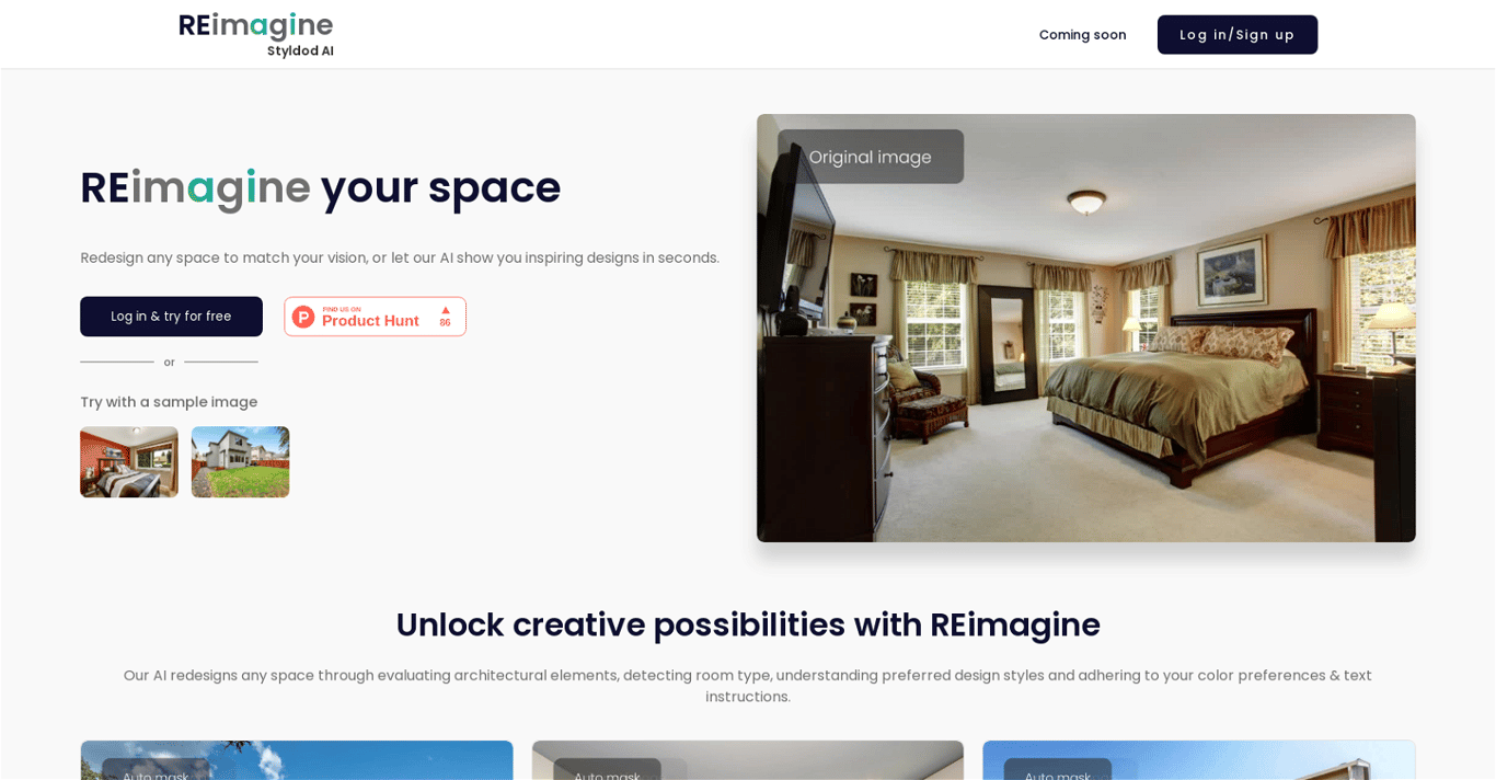 REimagineHome combines AI technology and professional tools to transform empty spaces through virtual staging and landscaping design, offering 5 free credits to every user for exploring their full suite of services.