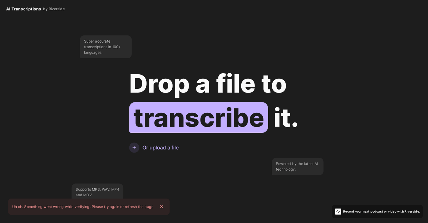 Riverside offers advanced AI transcription tools handling up to 4K recordings with seven speaker differentiation. The platform supports over 100 languages and offers both free basic tools and professional human transcription services.