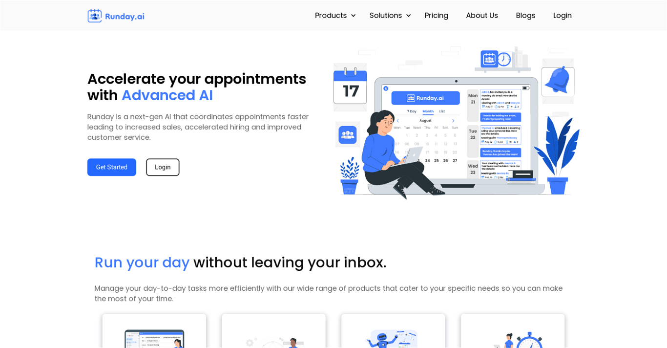 Runday.ai uses AI to automatically handle 95% of customer inquiries while scheduling appointments 3 days faster than manual processes. The platform integrates with major CRMs and communication channels, requiring basic setup for integration.