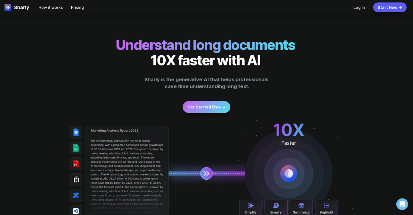Sharly AI transforms document analysis through advanced AI, streamlining collaboration across research, legal, and customer support domains while processing over 50 document types with robust security.