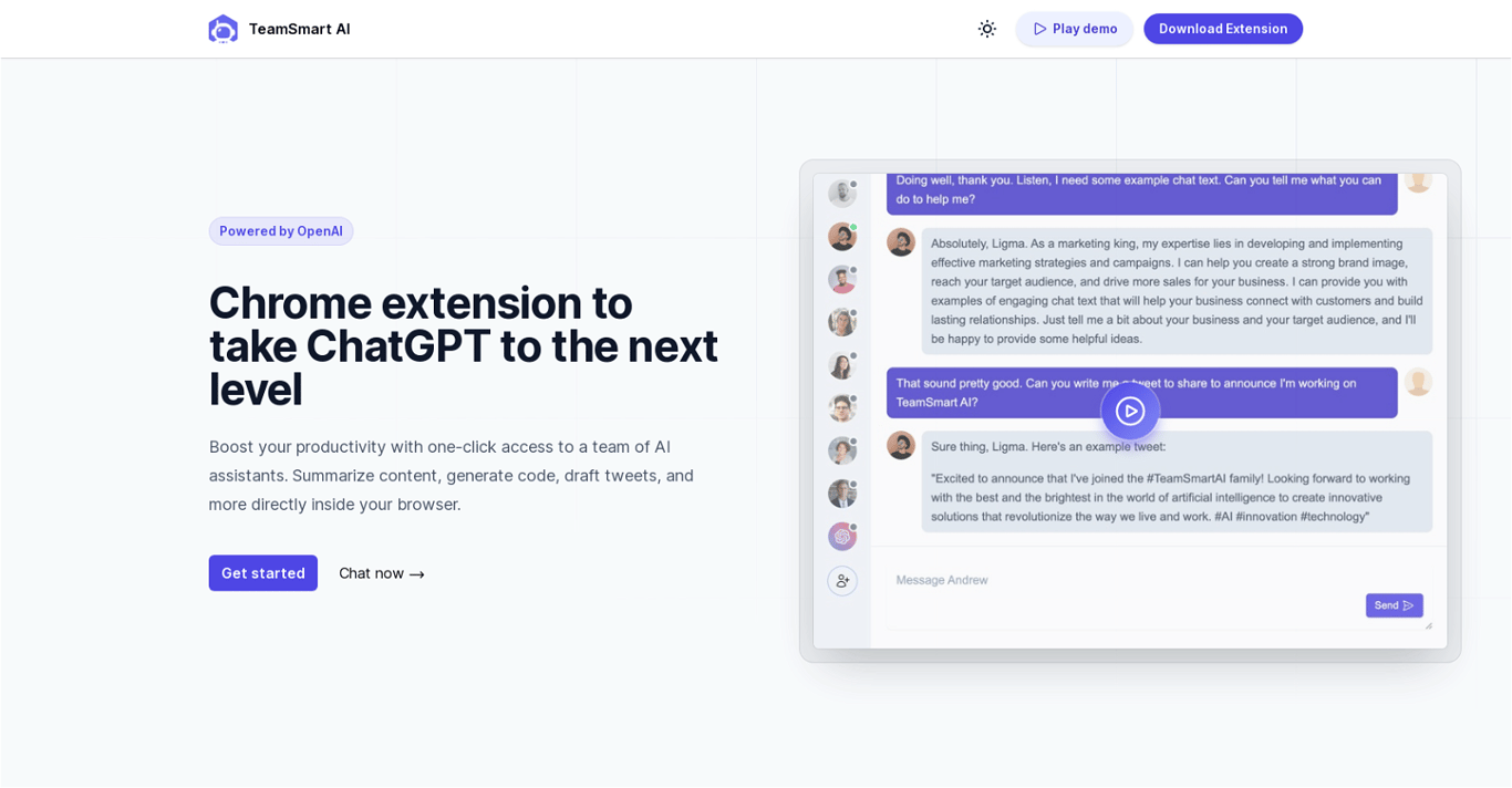 Meet TeamSmart AI, your personal assistant army in one browser extension. Get expert help for software, health, marketing, and more with just a few keystrokes. All data stays local, with no accounts needed.