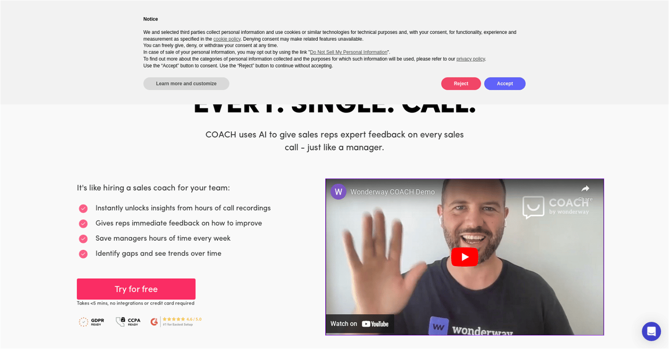 Wonderway Coach System uses AI to revolutionize sales coaching through automated call analysis and feedback, achieving 94% accurate coaching results in beta testing while freeing managers for strategic coaching activities.