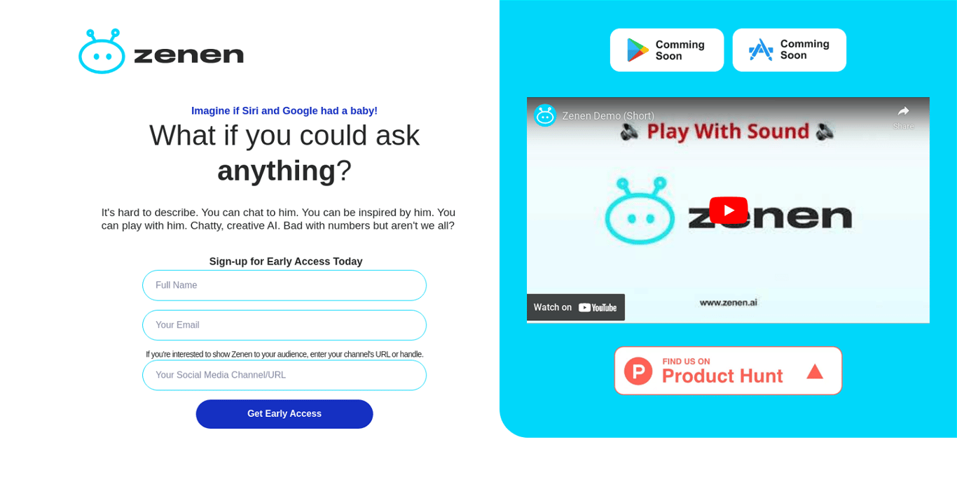 Zenen AI combines human creativity with artificial intelligence through natural voice communication, helping writers, marketers, and creatives generate original content while maintaining privacy and comprehensive knowledge across multiple languages.